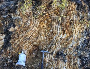 Figure 2: Highly altered and flow banded Silver City Rhyolite in hanging wall of Flint Creek Fault.