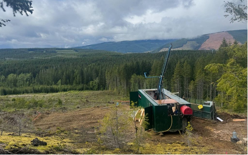 Nova Pacific’s Phase 1 program is focused on completing approximately 8,500 metres of drilling across 39 holes. Drilling commenced in May 2025, with 4,953 metres completed in 21 NQ-sized diamond drillholes to date. Drilling continues, and the addition of a second drill rig is expected to accelerate the program. In logged drill cores, sections of visible massive sulphide and sulphide vein mineralization have been identified within altered felsic volcanics of the Sicker Group.