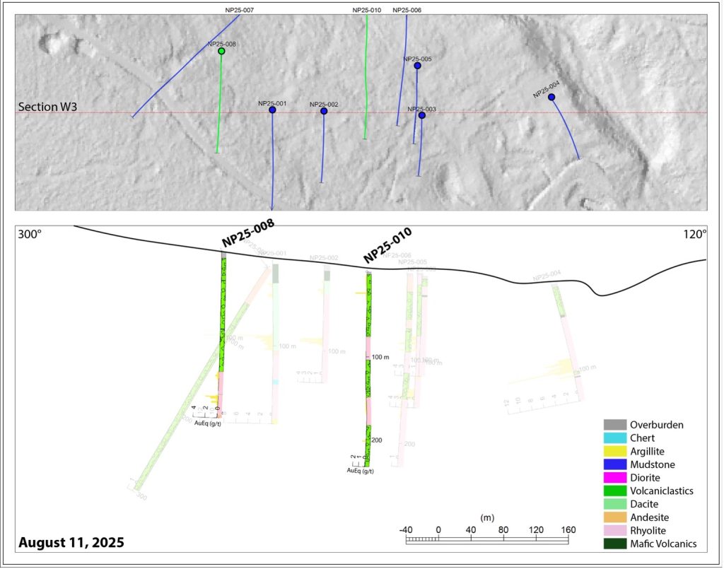 - Assays are also pending for NP25-039 and NP25-040 along section line W2 to verify historical drilling in this area.